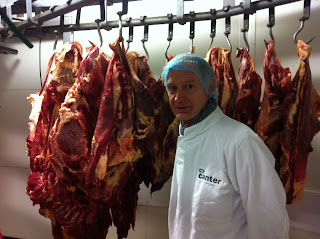 Chunks of beef are sold to different processing plants and one of these was where we were heading next. This is where the meat is transformed into its final products, into rump steak, sirloin, sausages, etc. At a very modern plant which looked more like a nice, clean, high-tech office building, we were even allowed to make some sausages and dissect a chunk of hind leg, the round.